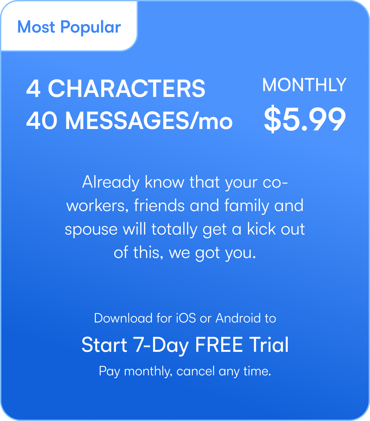 members how connected you really are with just a text. Use the free ad supported version or get more features starting at $2.99 / mo.